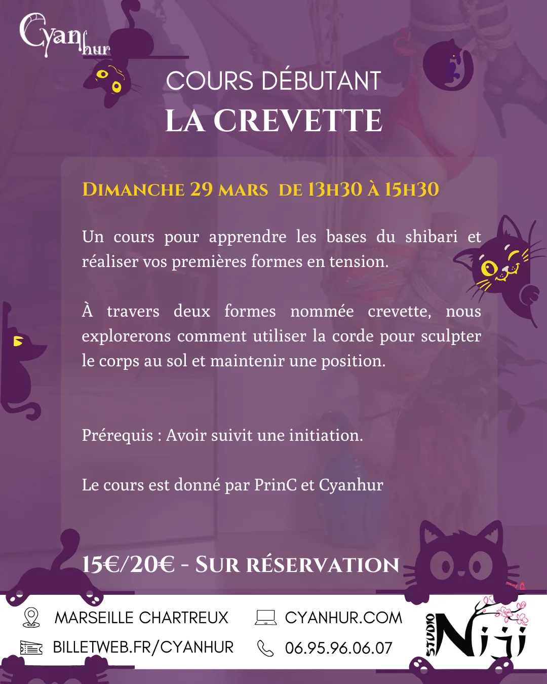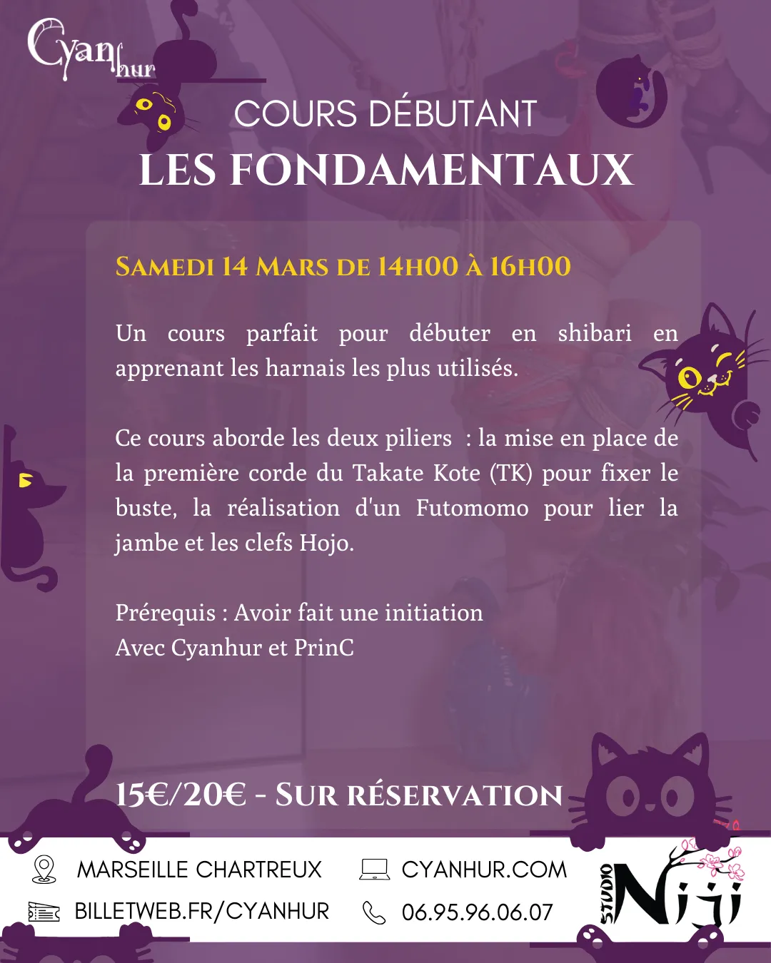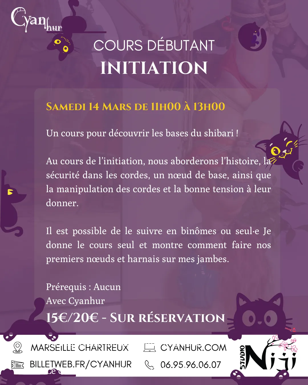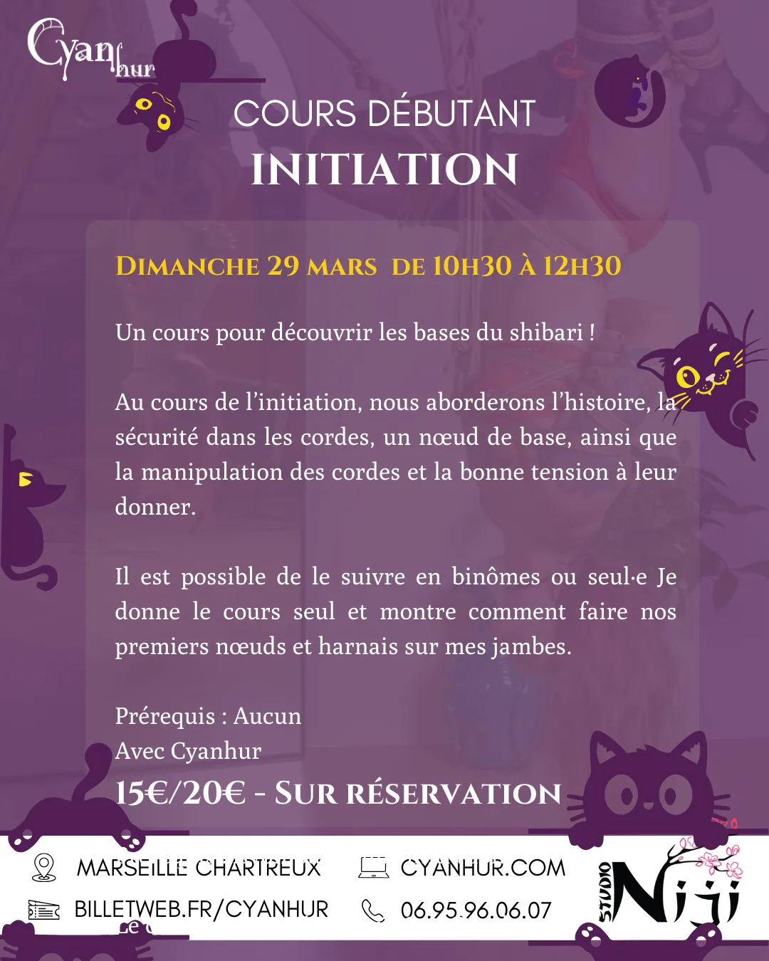 Cours de shibari tous les jeudis soir de 19h00 à 21h15