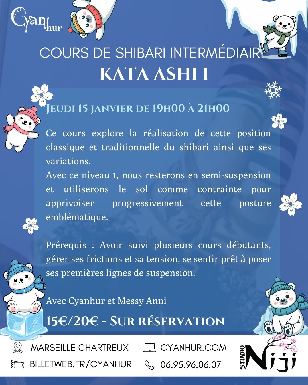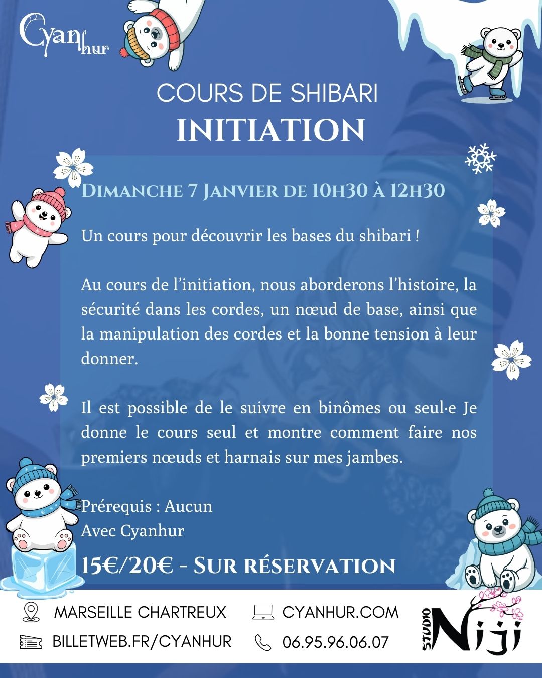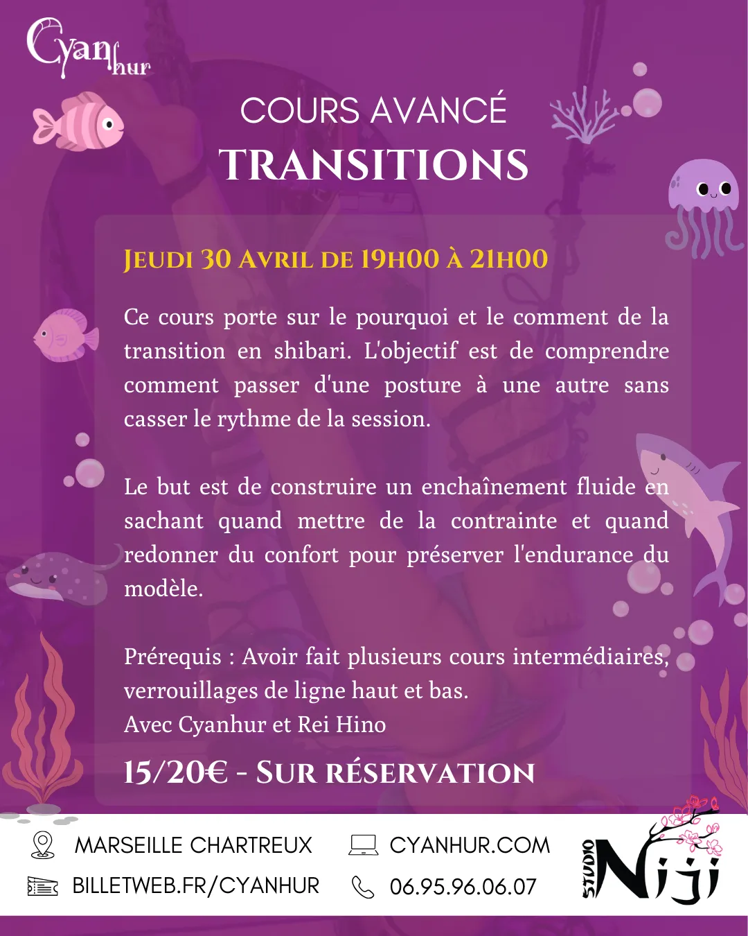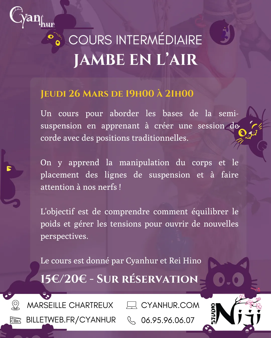 Cours de shibari tous les jeudis soir de 19h00 à 21h15