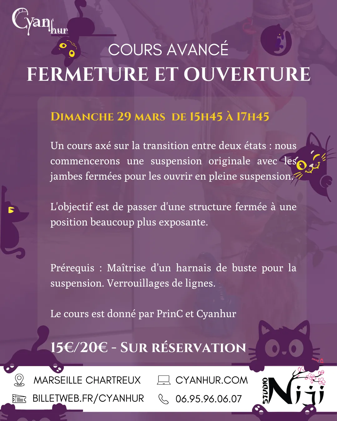 Dimanche 22 Mars : Initiation 11h00, Tout niveau 14h00, Avancé 16h00, Jam 18h00