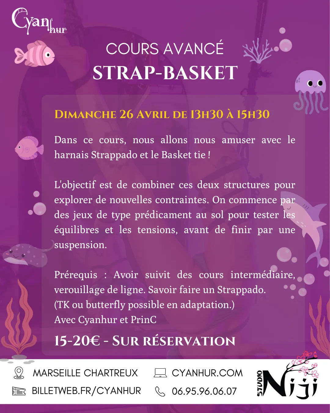 Pour apprendre à s’amuser au sol, réviser ses nœuds de base, faire des harnais basique à une corde, créer de nouvelles formes, découvrir les et manipuler le corps de son ou sa partenaire.
